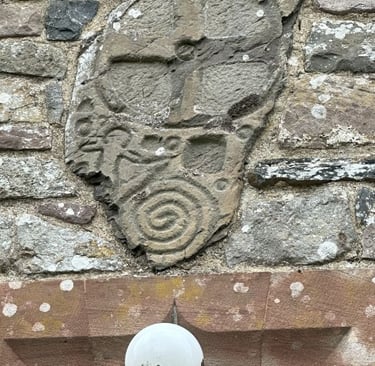 Early evidence of Christian worship in Llangammarch is provided by an ancient stone now fixed to the wall above the entrance to the present church. This depicts an infant, with arms extended, a coiled serpent overlaid with a celtic cross. It has been suggested that the carving is pre-Christian, possibly a burial stone, with the cross being added when the native Celts adopted Christianity.