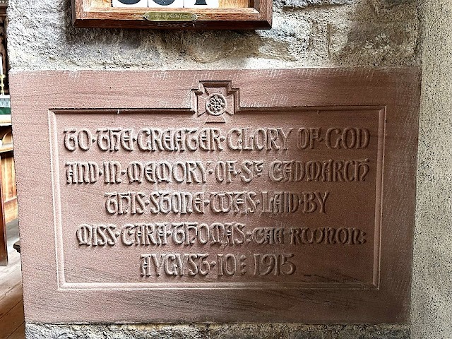 The architect of the new church, built to reflect the growing importance of Llangammarch as a spa region, was William Douglas Caroe. Caroe was a major architect of the late 19th and early 20th centuries, who is known in Wales as the architect responsible for the design of Cardiff University and for the restoration of Brecon Cathedral. He was an advocate of the 'Arts and Crafts' movement in architecture, which valued the traditional skills of the artist or craftsman at a time when machinery was taking their place in a drive for speed and cheapness of production. This is seen in St Cadmarch's is the fine craftsmanship of the timber doors, internal stonework, elaborate oak reredos and lectern.