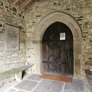 The architecture of the Church extends over four periods. The window near the pulpit is 12th Century; the other windows are 15th Century; the Chancel was added in Norman times and the porch was built in the 16th century. Previously the entrance to the Church would have been through a door in the West end, the outline of which can be seen today behind the larger than life statue of St David.